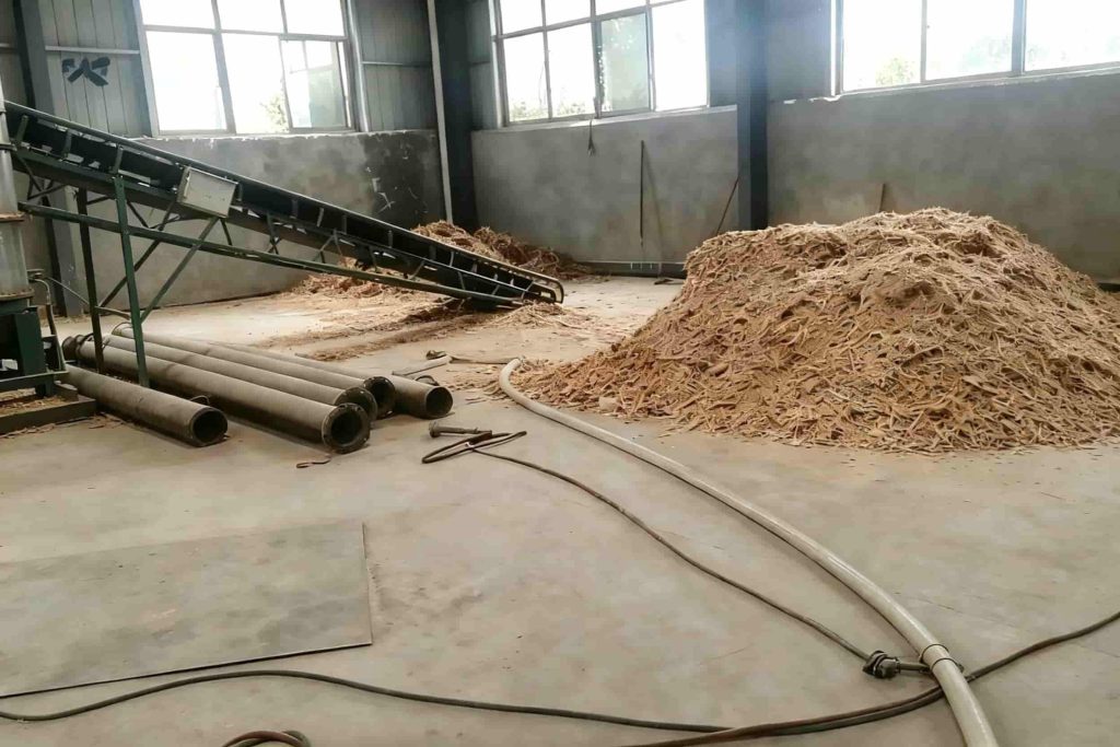 - This project uses a high-efficiency biomass boiler system designed for continuous industrial steam supply.